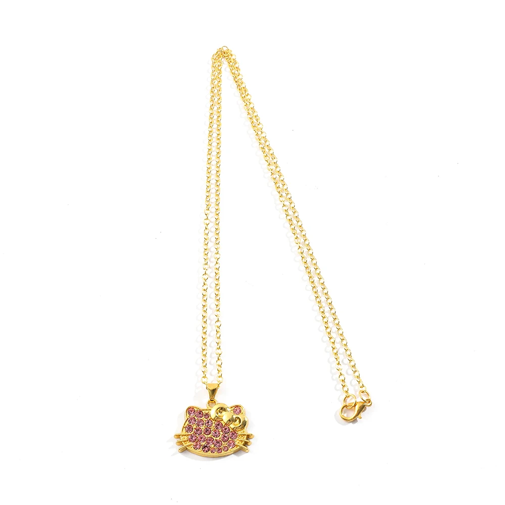 Anime Sanrio Hello Kitty Necklace Cartoon Figure KT Cat Gold Color Pendant Necklace Kawaii Jewelry Accessories Gifts